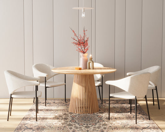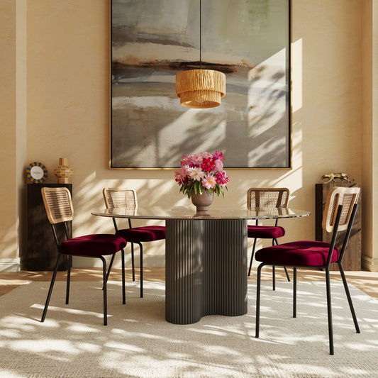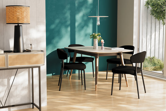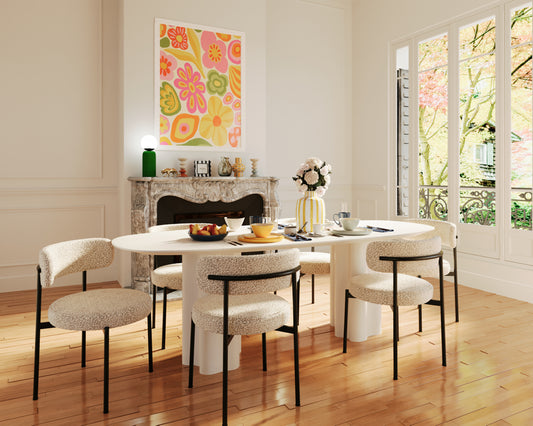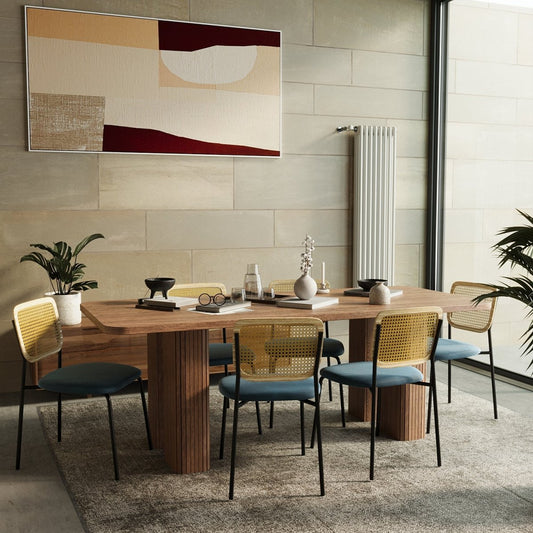 Vous rêvez d'une salle à manger chaleureuse ? Mixez tissu, bois naturel et formes souples, c’est infaillible. Vous avez envie d’une déco vintage ? Le velours et les lignes 60’s sont faits pour vous.